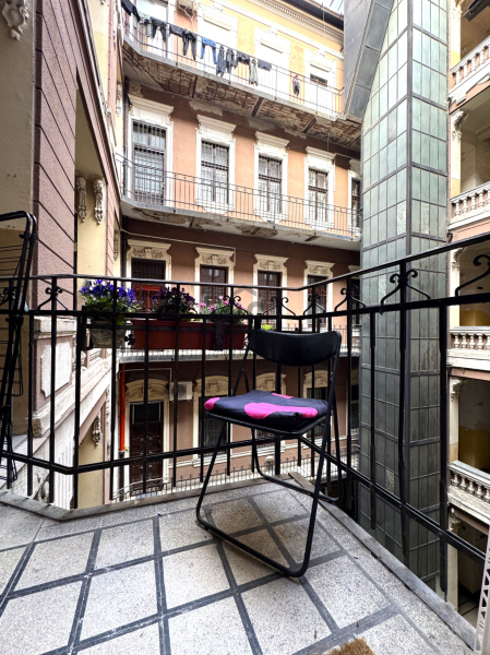 Polgári elegancia: az ingatlan egy rendezett, jó állapotú, klasszikus belvárosi társasházban található, ami időtálló értéket és presztízst biztosít.