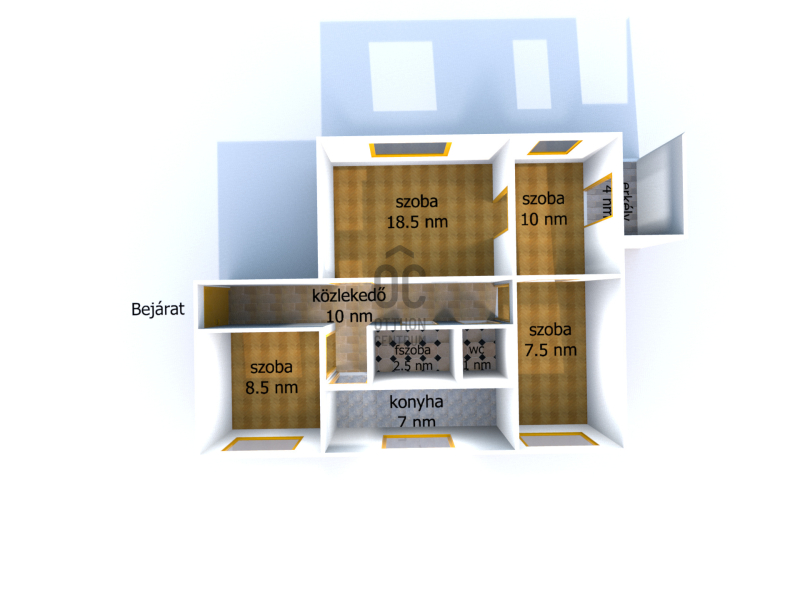 - 3 +1 szoba ,konyha -étkezővel,zuhanyzós fürdőszoba külön wc,a folyosón beépített szekrény