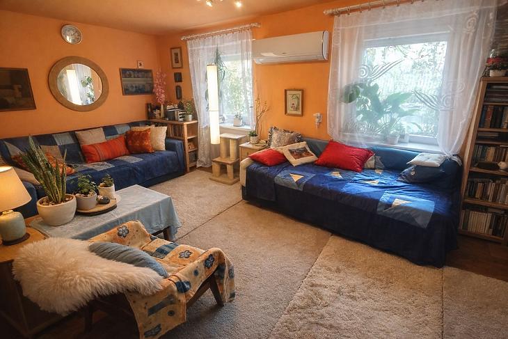 A lakás nyugati fekvésének köszönhetően kellemes, természetes fényviszonyokkal rendelkezik a délutáni órákban.