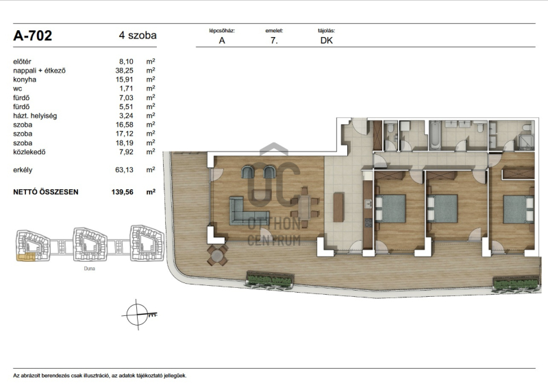 Erkély mérete: 63 m2