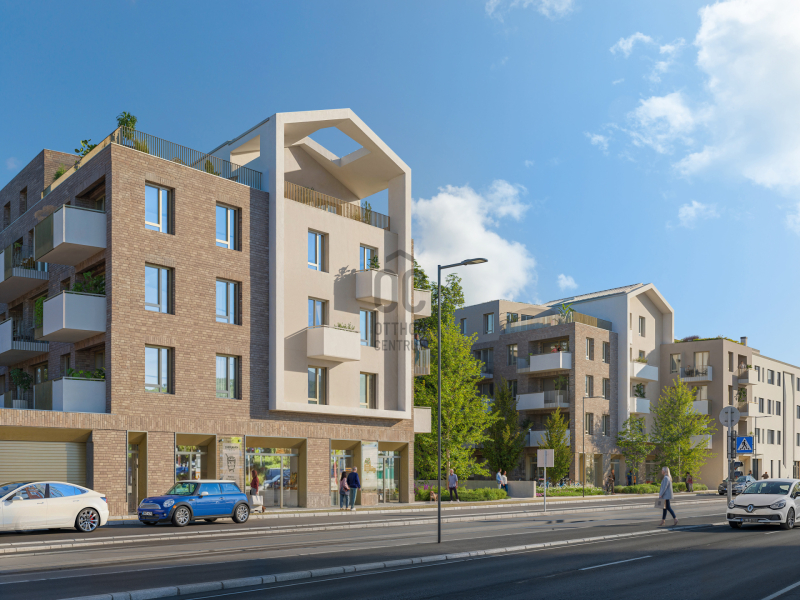 A 297 modern lakás között megtalálod a számodra ideális méretet és elrendezést, a praktikus stúdióktól a tágas, nappali + 3 hálószobás családi otthonokig. A belső közösségi kert egy zöld szigetet teremt a lakópark szívében. A skandináv modernitás letisztult vonalai ihlették az épületegyüttes megjelenését.