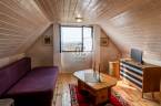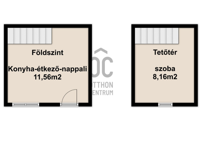 A földszinten tágas nappali-étkező-konyha, a felső szinten pedig egy hálószoba került kialakításra. A földszinti lakórészhez fürdőszoba tartozik.