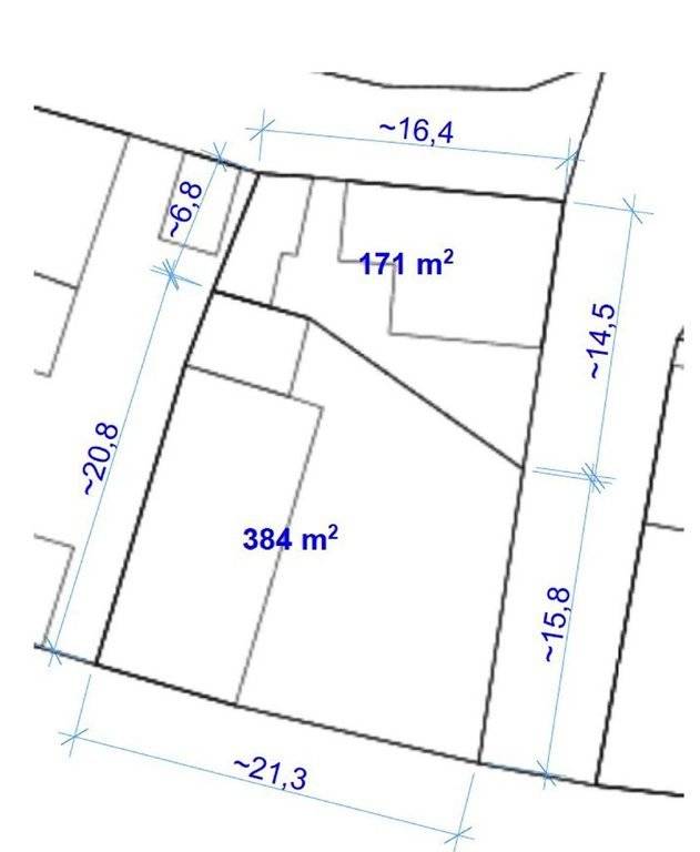 Telekméret: 555 m2 (egyik telek 384 m, a másik 171 m2).