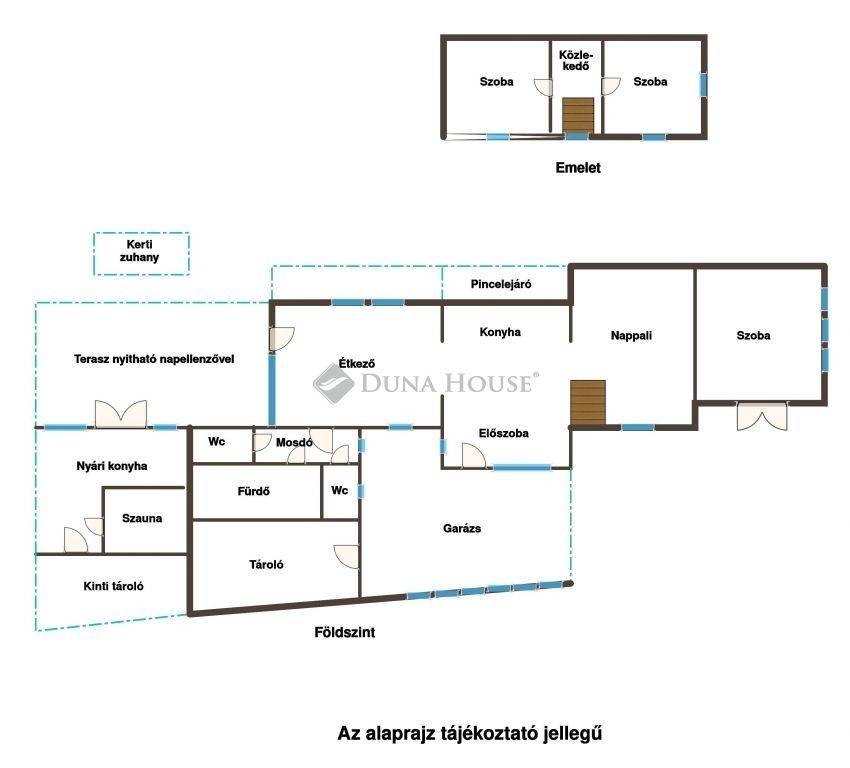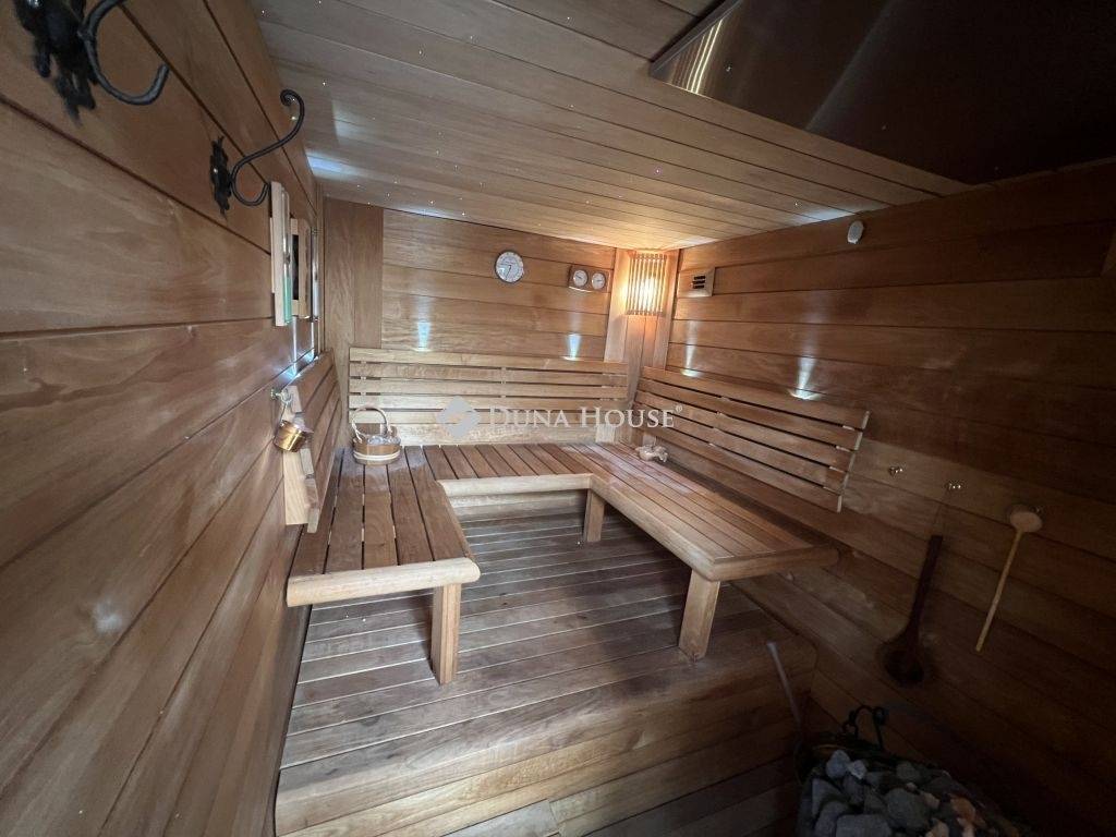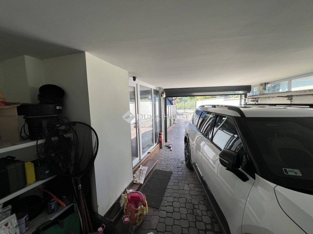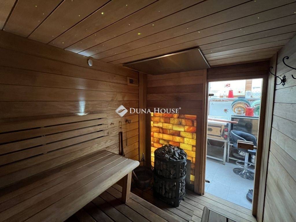 A telken zárható garázs áll rendelkezésre egy gépkocsi számára, továbbá udvari beállási lehetőség is biztosított. A fedett-nyitott terasz nyitható napellenzővel felszerelt, az udvaron kialakított külső konyha pedig szaunát is magában foglal., tökéletes helyszín baráti és családi összejövetelekre. Az udvaron egy kerti zuhanyzó is található, valamint fedett tároló tüzifával.