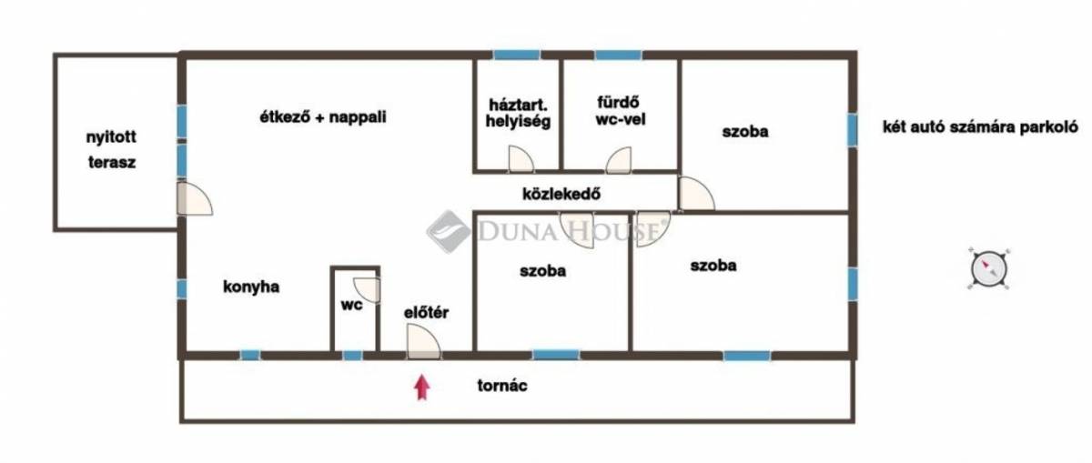 3 különnyíló hálószoba (10,15 nm, 12,21 nm és 13,05 nm).