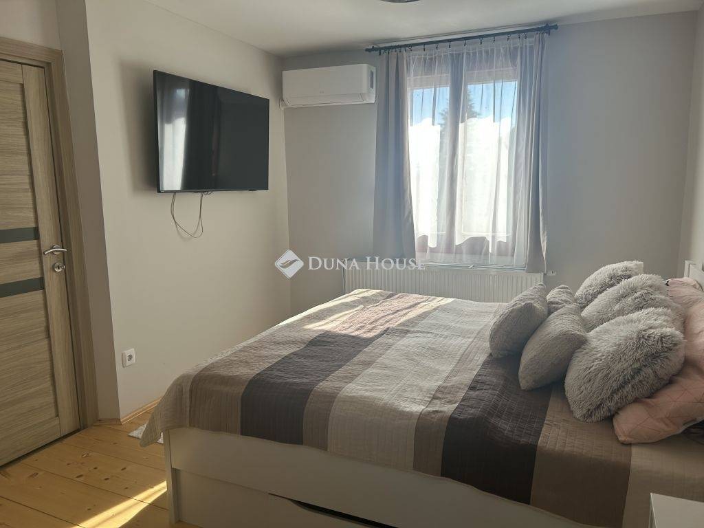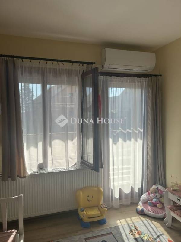 Tolna Újtelep részén, kedvelt utcában eladásra kínálok egy 147 m-es kétszintes családi házat 728 m2-es sarok telekkel. A tégla falazatú, cserép fedésű lakóházban nappali, 3 szoba, gardrób, konyha+étkező, fürdőszoba, 2 wc háztartási helyiség valamint egy Hörmann ajtóval ellátott garázs kapott helyet. A földszinten és az emeleten is két fedett terasz, található. A nappaliból nyíló terasz burkolattal illetve ponyvával lett ellátva, így télikertként is használható. A teljes víz-, szennyvíz-, villany-, gázhálózat felújításra került. Áramellátás 3 fázis, 3x32 A. A vízvezetéken vízlágyító berendezés beépítése történt. A házon 17 kW-os napelemrendszer került elhelyezésre, mely 2032-ig saldo-s elszámolású. A rendszer kiépítésével az áram + fűtés + elektromos autó töltés költsége díjmentesre kalkulálható. A gázkazánnal kialakított központi fűtés mellett 6 darab klíma is felszerelésre került. A nappalban, az egyik emeleti szobában és a fürdőszobában padlófűtés található. A teljes lakóházban a burkolatok cserélve lettek. Az ingatlan kívülről 10 cm, a födém pedig 40 cm-es szigetelést kapott. A kert parkosított, öntözőrendszerrel van ellátva, fúrt kút is rendelkezésre áll. Új kerítés mindkét utcai oldalon, valamint a kocsibeálló és a járdaszakasz is térköves. A z udvaron helyet kapott egy 30 m2-es garázs, kettő 15 m2-es tároló és egy 45 m2-es kerthelyiség. A garázsban elektromos autótöltő lett beépítve. Mindkét garázsbejárónál elektromos úszókapuval található.Amennyiben felkeltettem érdeklődését, hívjon bizalommal!