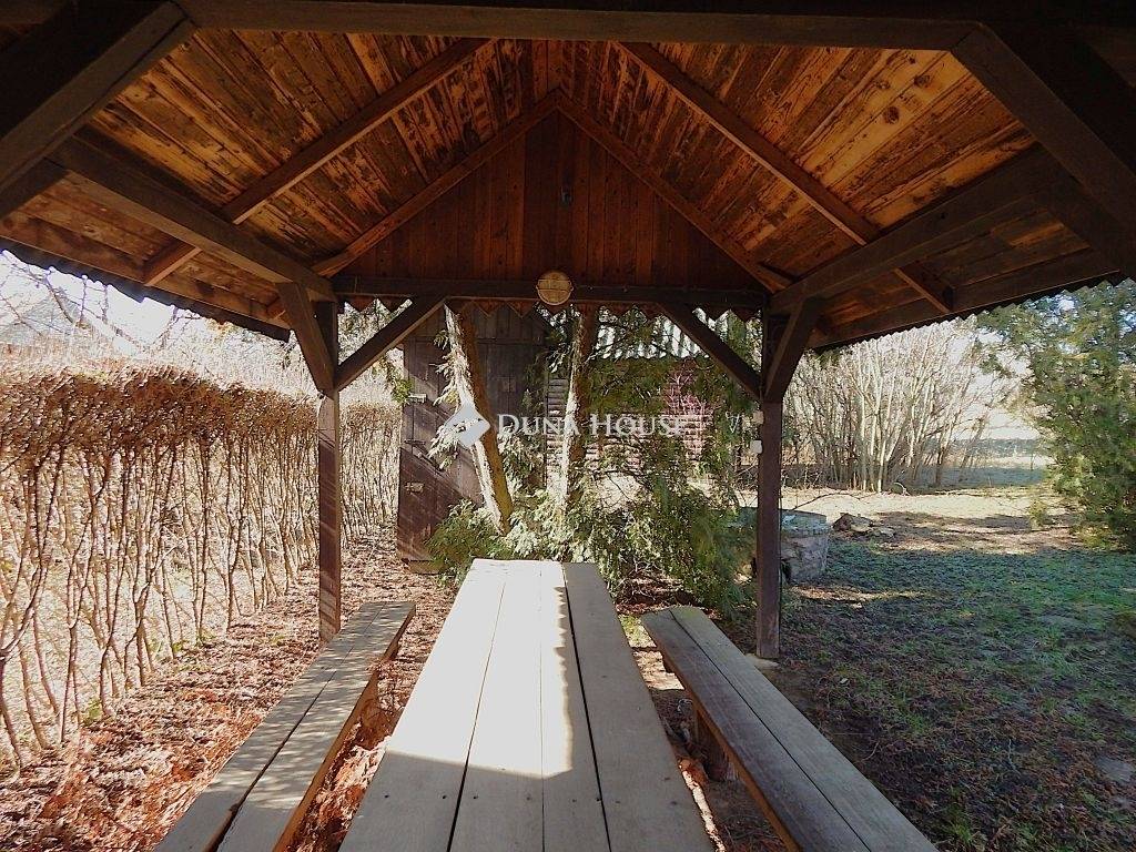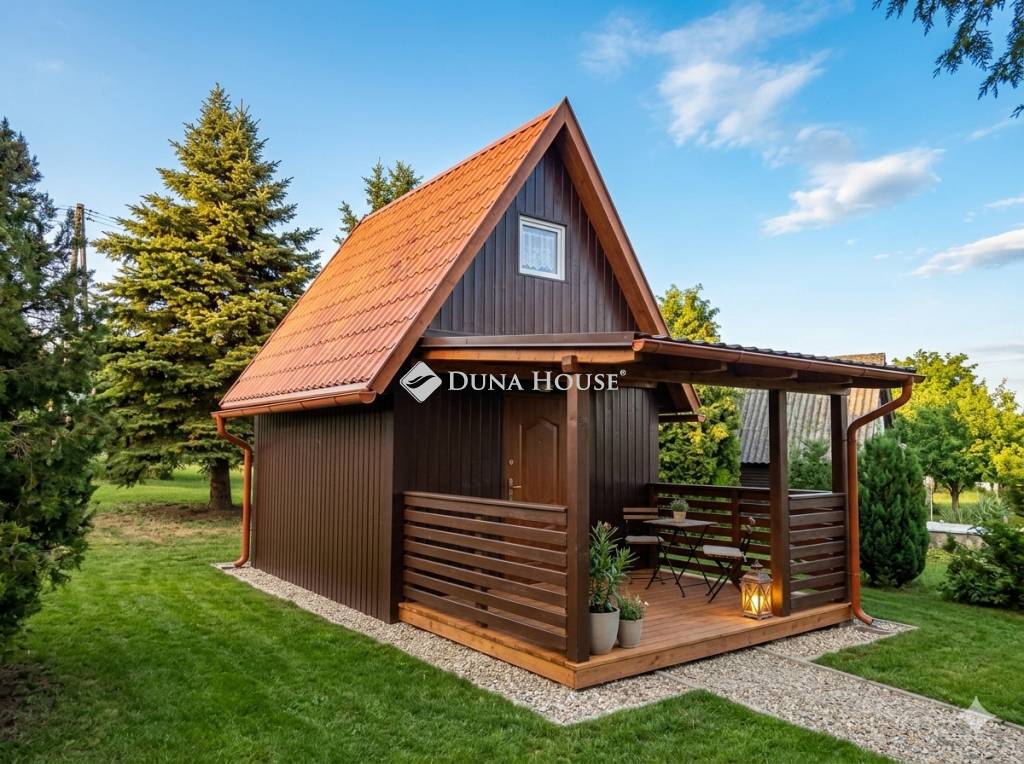 Fehérvárcsurgón, Balinkabánya üdülőtelepen, a horgásztótól 300 méterre vált eladóvá ez a kedves kis nyaraló, amely ideális választás pecásoknak, természetjáróknak, de ha csak elvonulni szeretne a városi forgatagból, vagy kiadó ingatlant keres befektetésnek, akár kulcsosházként is üzemeltethető. A házban elektromos áram rendelkezésre áll, a kertben fúrt kúttal rendelkezik.Az újonnan felépített épület könnyűszerkezetes, 15 cm kőzetgyapottal körben szigetelt, a tető alatt is le van szigetelve, új cserepeslemezes fedéssel rendelkezik. Korszerű, új műanyag, dupla üvegezésű ablakokkal és több ponton záródó biztonsági ajtóval lett felszerelve. A kert területe kb. 350 m2, amely igény szerint zöld sövénnyel is leválasztható az üdülőtelep részétől.A tetőtér beépítéses házacska nettó 2x11 m2, amelyhez 6,5 m2 fedett terasz kapcsolódik. Az épületbe nincs víz bevezetve, a wc külön kis épületben található, amely fa szerkezetű, és másik oldala egy fás fészernek is helyet ad. A kertben egy kb. 18 m2 kerti kiülő is található sörpaddal, valamint sütögetéshez használható tűzrakótér is rendelkezésre áll.A nyaralót nagy fenyők, örökzöld és évelő díszcserjék ölelik körbe, ideális menedék egy forró nyári hétvégén. A víztározó és a közeli természetvédelmi terület és vadaspark közelsége miatt kifejezetten ideális bázis kirándulóknak, túrázóknak, a természet szerelmeseinek. Személyes megtekintéshez időpont egyeztetés szükséges!Várom érdeklődő hívását!
