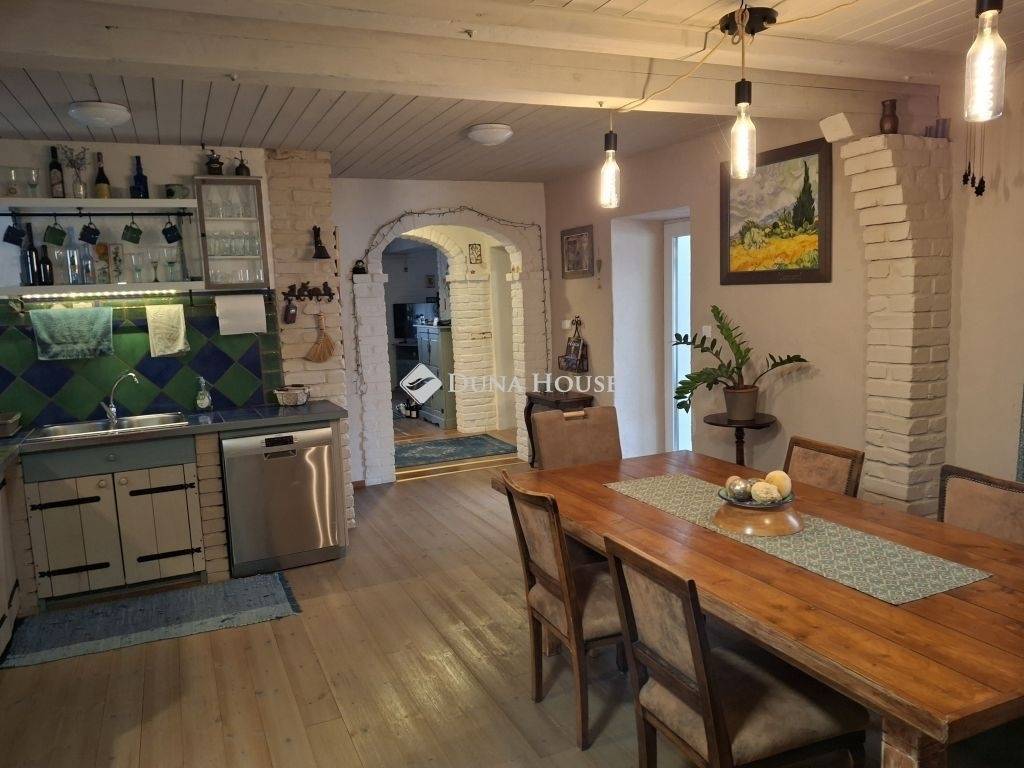 Eladásra kínálunk egy gyönyörű, rusztikus belső építészettel rendelkező ingatlant, amely 179 000 000 HUF értékű. Ez az ingatlan nem csak a belső tereivel, de a külső adottságaival is különleges.Telekméret: 817 m2.Ház alapterület: 190 m2Földszint: előszoba, közlekedő, nappali, nagy méretű konyha étkezővel, lakóterasz, kamra, fürdőszoba + wc.Emelet: 4 db hálószoba, nappali (multifunkcionális), fürdőszoba külön wc-vel.Melléképület: 60 m2Dupla beállásos garázs, külön bejáratú iroda helyiség, műhely, tároló. Külön lakrész kialakítható.Ház 2019-ben történt felújítása során külső szigetelést (10 cm dryvit), tetőfelújítást, korszerű, 3 rétegű műanyag nyílászárókat kapott.Az emeleten lévő helyiségek 2 éve szintén teljes felújításon estek át.Telepítésre került 11,4 kW-os házi naperőmű rendszer 40 db napelem elhelyezésével.Ennek köszönhetően a ház villany és fűtés költsége jelenleg 0 forint éves szinten!Fűtésről 7 db inverteres hűtő-fűtő klíma gondoskodik.Gáz kikötésre került, az telken belül van a gázcsonk.Földszinti nappaliban beépítésre került egy egyedileg kialakított, kéményventilátorral üzemeltetett, fatüzelésű kandalló!Nappaliból nyíló lakóterasz ponyva védettsége miatt nyári konyhaként + nappaliként áprilistól októberig kiválóan funkcionál!A kertben gyümölcsfák, dísznövények és egy gyönyörű levendulaágyás található.A fúrt kútnak köszönhetően a kert öntözése gazdaságos és környezetbarát módon megoldott.Ez a különleges otthon tökéletes választás azoknak, akik elszakadva a város zajától, mégis komfortos és modern környezetben szeretnének élni.Központi fekvésű, csendes utcában található ingatlan, gyalog 5-10 percre van a vasútállomástól, óvodától, két tannyelvű Gimnázium és Általános iskolától.Kérem hívjon bizalommal!