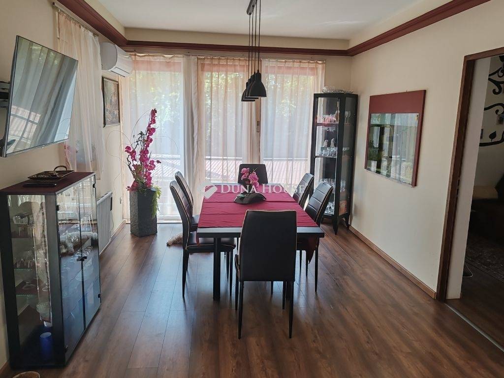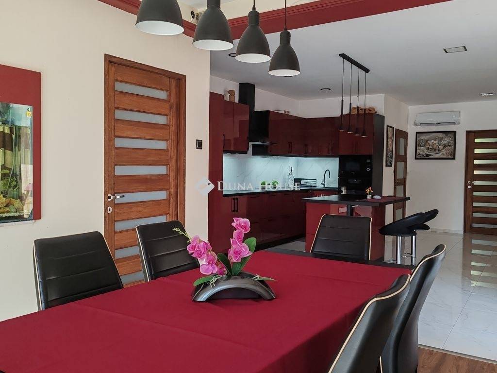 Eladó Kápolnásnyéken 210 m2-es kitűnő állapotú családi ház, 1135 m2-es telken.Velencei tótól 800 méterre, M7-es autópályától 3 km-re.A családi ház 2021-ben épült.Földszinten található 3 hálószoba, gardrób, egy légtérben nappali, konyha, étkező, kamra, 2 db fürdőszoba.Szuterénben található garázs, kamra, wc kézmosóval, gépészeti helyiség.Gépészeti egységben elhelyezésre került: napelem, napkollektor, akkupakkal ellátott hibrid inverter vezérlés, víztisztító-vízlágyító.Családi ház kialakítása, elrendezése, burkolatai luxus körülményeket biztosít.Több kijárat segít a házat körülölelő teraszra kijutni, hogy panorámás kilátással rálássunk a kerti-tóra.Parkosított kerthez tartozik: saját patak, kerti tó, grillező, szaletli.Különálló wellness épület szintén hatalmas ablakfelülettel, ledes, csillagos égbolttal rendelkezik. Beépítésre került egy különálló wc, egy esőztetős zuhanyzó, 4 személyes (bluetooth-os, két motoros) jakuzzi és egy infraszauna. Az épülethez közvetlen napozóterasz tartozik. Televízió és internet kapcsolat is tartozik a kikapcsolódáshoz.A ház felszereltségét a mai kor igényeinek megfelelő eszközök segítik. A kerti éjszakai világítást alkonykapcsolóval ellátott, energiatakarékos LED fényforrások biztosítják. A mélygarázs lejáratát eső és hőmérséklet szenzoros padlófűtés tartja a jeges időkben is szárazon. Mindkét garázskapu elektromos, akár csak a telefonról, távirányítóról üzemeltethető úszó illetve szárnyas kapu. Az ingatlan minden irányban térfigyelő (éjjel látó) kamerákkal van felszerelve.A lakótér fűtését romantikus, gyors és energiatakarékos megoldások adják. A lakótér központi eleme az 12 kW-os látványkandalló eredeti csiszolt kövekből, de a programozható, helyiségenként szabályozható radiátorok (törölközőszárító) épp úgy gondoskodnak a kellemes hőmérsékletről, mint a padlófűtés. Nem utolsó sorban pedig 3 db 3,5 kW-os hűtő-fűtő, energiatakarékos, minőségi klíma jelent megoldást úgy a hideg, mint a meleg idő ellen.Az ingatlan kizárólag elektromos ellátottságú, megújuló energia támogatásokkal, így gázszámlával nem rendelkezik. Szennyvíz csatorna helyett, egyedi bio szennyvíz tisztító tartállyal lett felszerelve.További extrák, a wifiről irányítható kapcsolók, elektromos vezérlésű redőnyök. A nyílászárókon szúnyogháló. Teljes szélességben pakolható (de nem járható) padlástér. Az ingatlan távolabbi pontjaihoz internet erősítő jeladók viszik a kapcsolatot.A ház téglából épült, fafödémmel, tagolt, betoncserép fedésű tetőzettel. A falak 15 cm-es, míg a födém 20 cm-es szigeteléssel ellátott. Az üveges nyílászárók 3 rétegű, biztonsági üveggel védenek a hang illetve hőmérséklet be/ki jutásától.Környezet: Velence Korzó, szabad strand, vízisípálya 8 perc séta (3p autó) Központ: Élelmiszerboltok, orvos, ügyvéd, fodrász 5 percre, óvoda, általános iskola szintén. Szomszéd településen (kerékpárral 5 perc) 8 osztályos két tannyelvű gimnázium, középiskola, sport akadémia is találhatóSportolási és kirándulási lehetőségek. Bp autóval 35 perc, vonattal 40 perc. Székesfehérvár autóval 15 perc, vonattal 20 perc.Az ingatlan per-, és tehermentes. Megállapodás után, rövid időn belül költözhető!Ingatlan beszámítás is szóba jöhet.Keressen bizalommal!