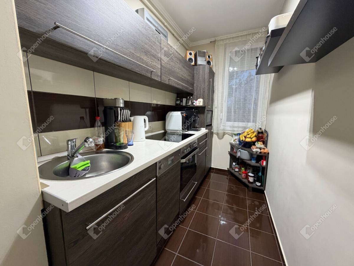 A lakás belső tere modern, letisztult kialakítású: a burkolatok korszerűek, a konyha gépesített, praktikusan kialakított. A helyiségek jól bútorozhatók, a nappali és a félszoba funkcionálisan elkülönül, így kényelmes életteret biztosít akár egyedülállók, akár párok számára. A franciaerkély és a zöldre néző kilátás kifejezetten kellemes, nyugodt hangulatot ad az ingatlannak.