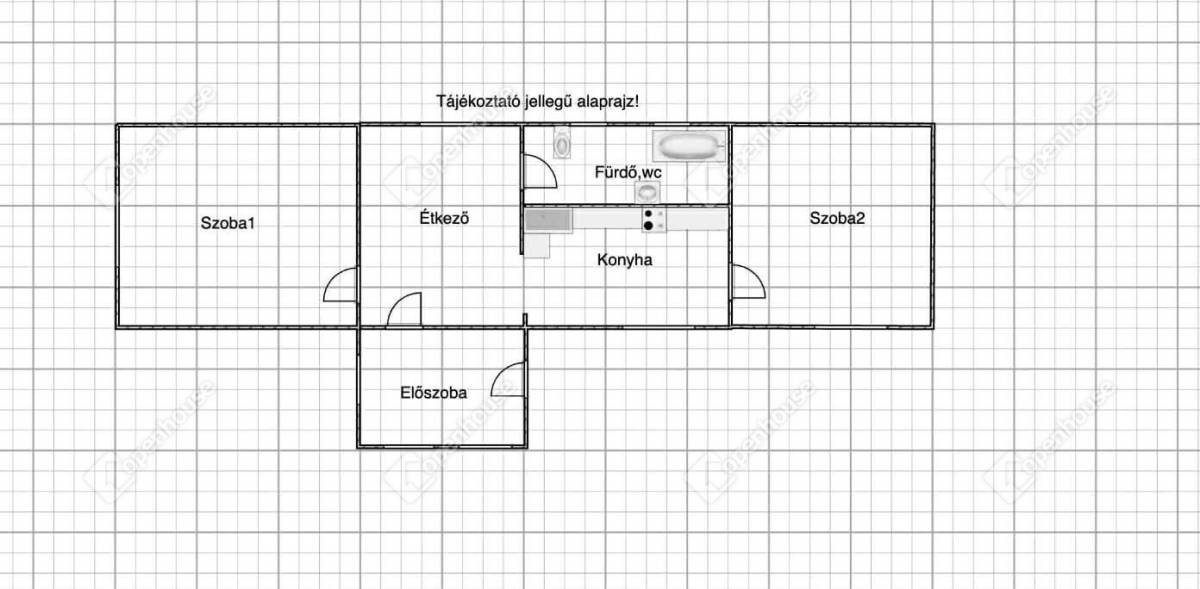 A ház elosztása praktikus és élhető: két külön nyíló szoba, étkező, konyha, fürdőszoba, külön WC, valamint előszoba került kialakításra. A helyiségek jól bútorozhatók, a térkihasználás logikus, így akár kisebb átalakítással még tovább növelhető a komfortérzet.