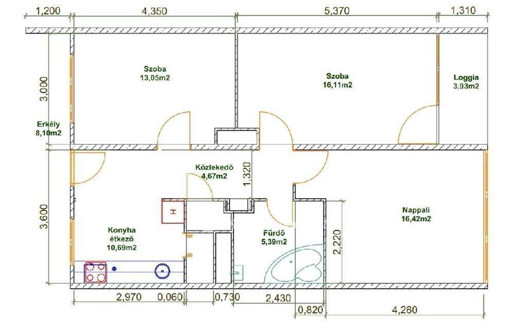 70 nm-es, 1. emeleti, elszeparált lakás, nyugodt, privát élettér