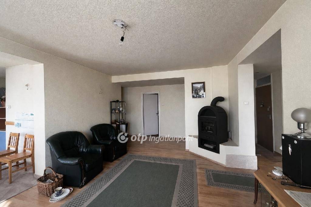 A lakás egyedi hangulatát egy hangulatos kandalló adja, amely a rendeltetésének megfelelően kiépített kéménybe csatlakozik. A konyhából nyíló, ritkaságnak számító hűtőkamra is helyet kapott az ingatlanban.