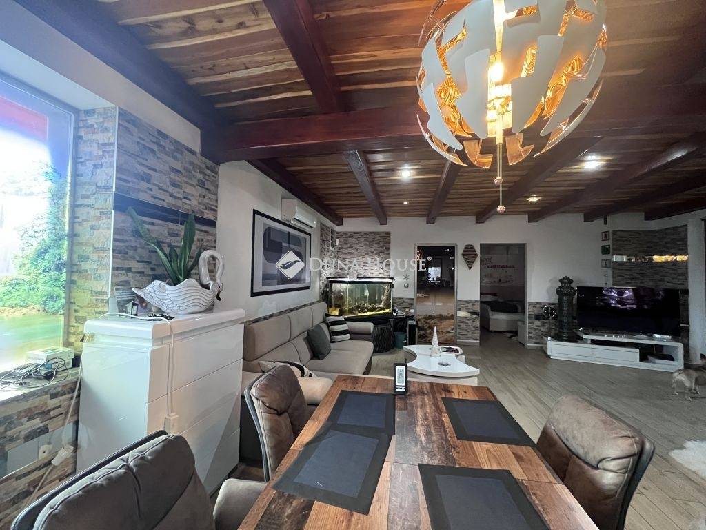 Kiskörén különleges adottságokkal rendelkező üdülő épület eladó!Kisköre nyugodt, természetközeli részén kínálunk megvételre egy kiváló állapotú, tégla építésű, szigetelt családi házat, amely ideális választás állandó otthonnak, nyaralónak vagy akár horgászatot kedvelők számára.Az ingatlan összközműves, biztonságáról kamerarendszer és riasztórendszer gondoskodik. A komfortérzetet cserépkályha, villanyfűtés, valamint minden helyiségben klíma biztosítja. A fűtés telefonról is vezérelhető, így a ház mindig az érkezésére felmelegíthető.A gondosan karbantartott udvar valódi különlegességeket rejt: saját horgásztó és külön horgászház teszi egyedivé, emellett borospince, automata öntözőrendszer és számos termő gyümölcsfa növeli az értékét és hangulatát.A bútorzat megegyezés szerint az ingatlanban maradhat.Ha egy különleges hangulatú, sokoldalúan hasznosítható otthont keres, ahol a természet és a kényelem találkozik, ez az ingatlan remek választás!