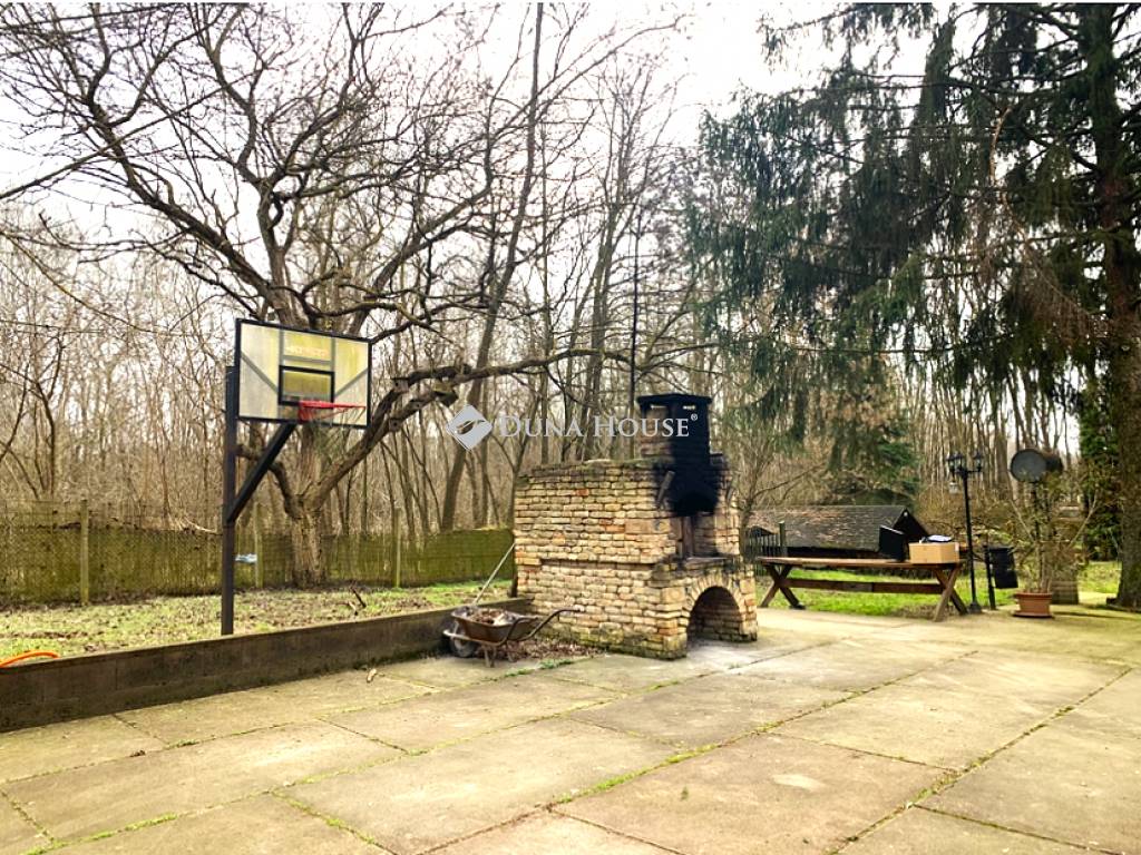 A fás, parkosított telken található egy gyönyörű, nagyméretű halastó, valamint egy kültéri sütögető, kemence.