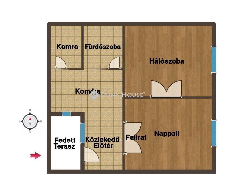 - A ház 68 nm, amelyből 8 nm fedett terasz.