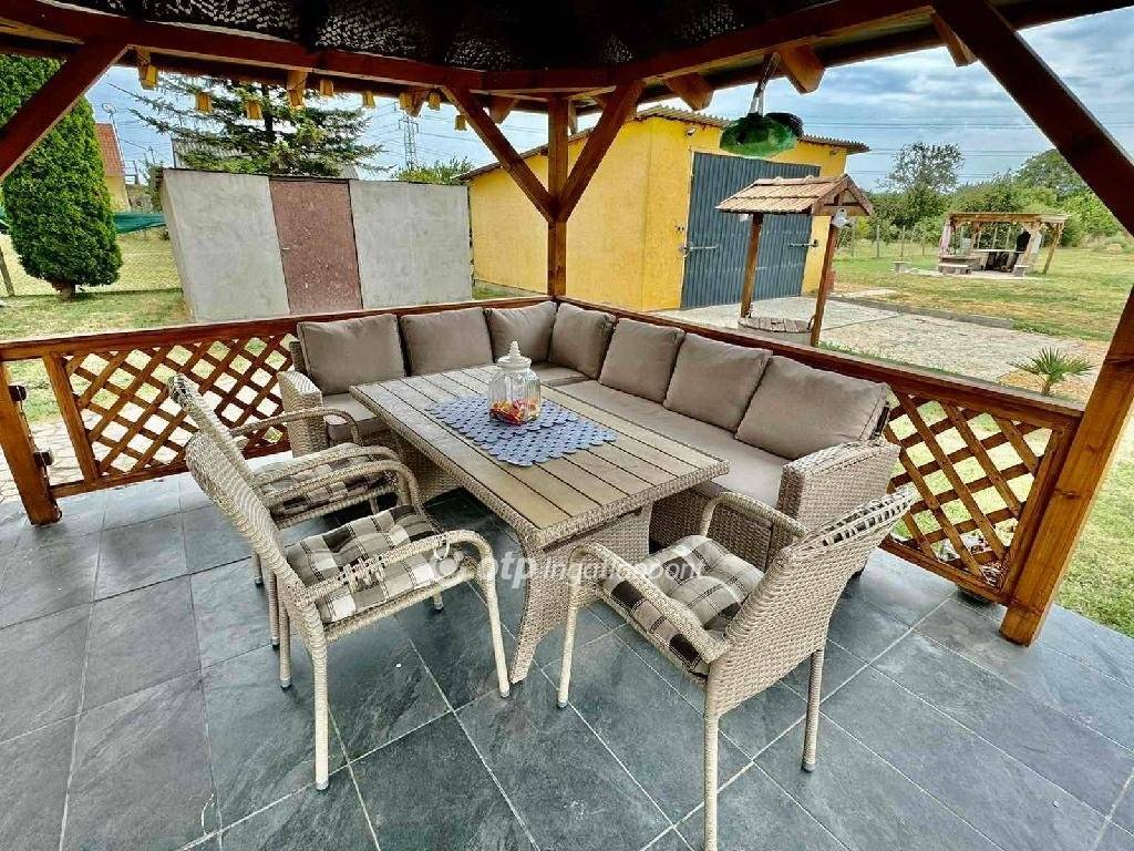 A kertben bográcsozó, kemencével és egy szaletli található. A növények öntözésére, a jakuzzi feltöltésére fúrt kút áll rendelkezésre. A hatalmas kert gondozására egy fűnyíró traktor is rendelkezésre áll. (Szintén megegyezés kérdése a traktor ára.)
