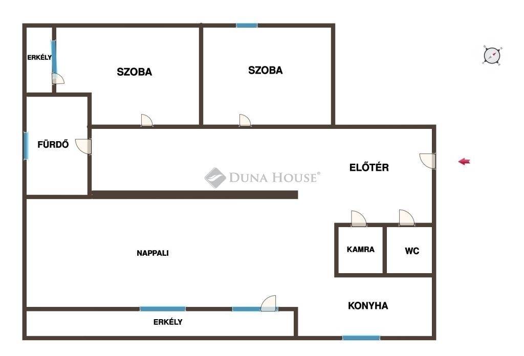 A lakáshoz 2 darab erkély tartozik, összesen 7 m² nagyságban, amelyek kellemes pihenési lehetőséget biztosítanak.