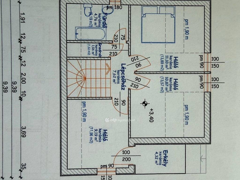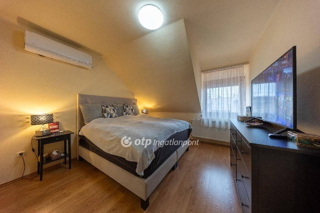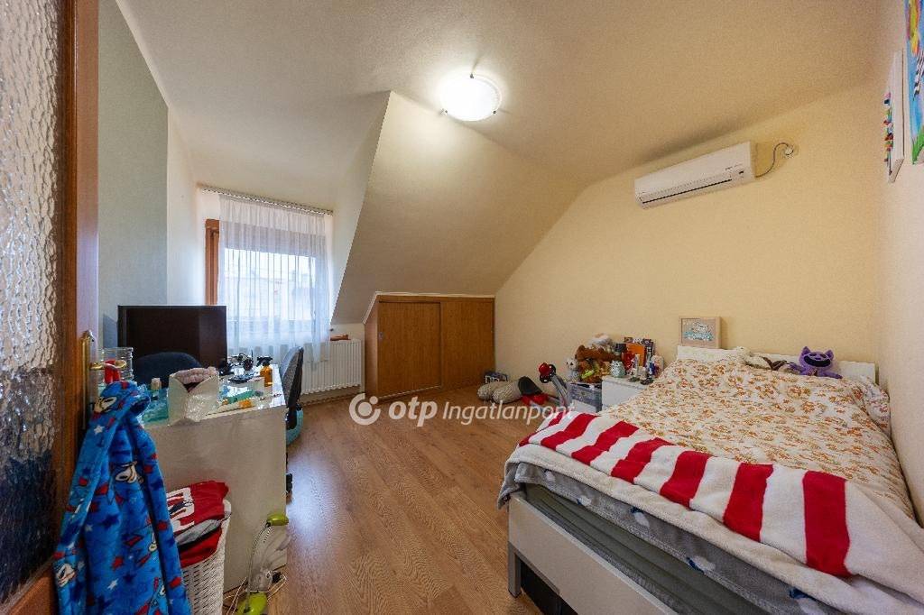 Az emeleten három hálószoba, gardrób, fürdőszoba és erkély biztosítja a kényelmet.