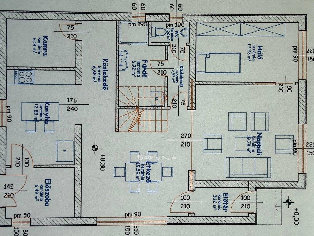 A földszinten tágas nappali?étkező?konyha, kamra, gardrób, fürdőszoba és külön WC található.