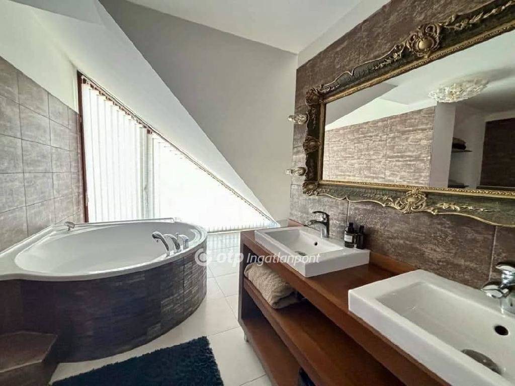 Az ingatlan földszinti élettere rendkívül átgondolt kialakítású, hiszen egy tágas, világos amerikai konyhás nappali szolgálja a családi együttlétek központját, amely közvetlen kapcsolatban áll a csodálatos, gondozott kerttel és a fedett, pergolás terasszal, így a belső és külső terek harmonikusan kapcsolódnak egymáshoz, emellett ezen a szinten egy kényelmes szülői hálószoba, valamint egy fürdőszoba is helyet kapott, biztosítva a mindennapi komfortot.