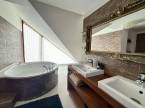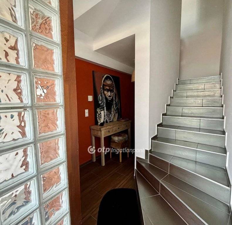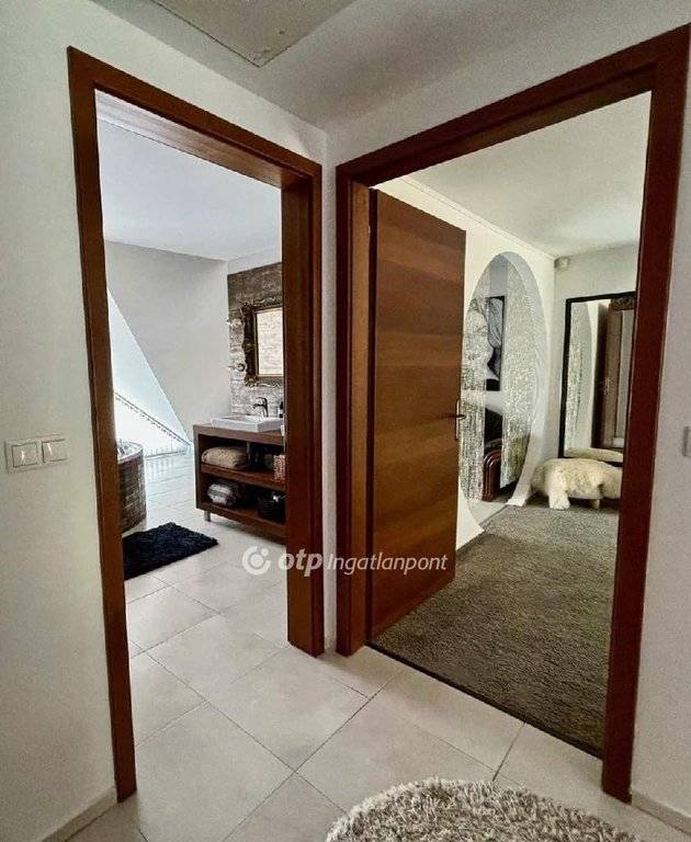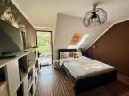 Az emeleti rész két egyedi kialakítású, nagyméretű hálószobának ad otthont, amelyek saját erkéllyel rendelkeznek, így mindkét szoba különleges hangulatot és privát életteret kínál, továbbá itt található egy világos, tágas, kádas fürdőszoba, amely a család minden tagja számára kényelmes használatot biztosít.