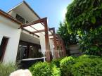 A biztonságról riasztórendszer, a komfortérzetről pedig hűtő-fűtő klíma gondoskodik, míg a gondosan karbantartott, parkosított udvar további különlegessége a kert végében kialakított filagória és bográcsozó hely, amely ideális családi és baráti összejövetelek helyszíne lehet.