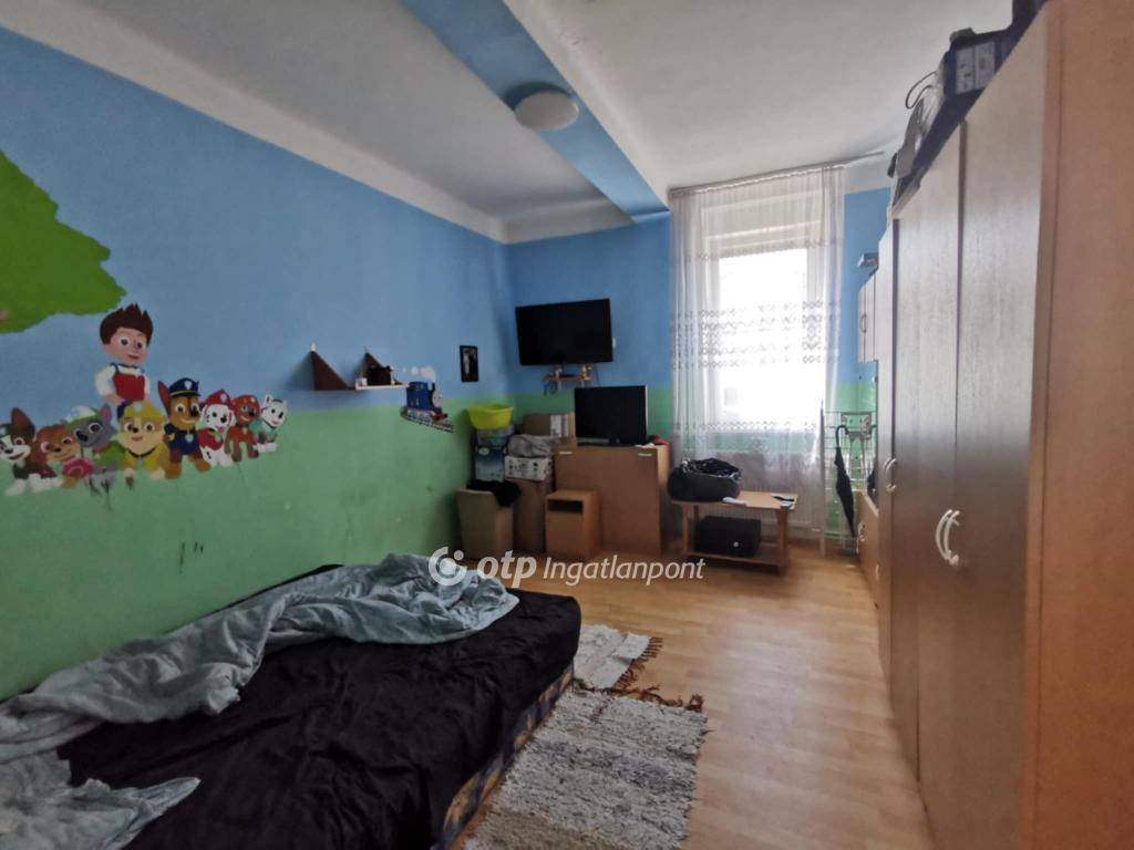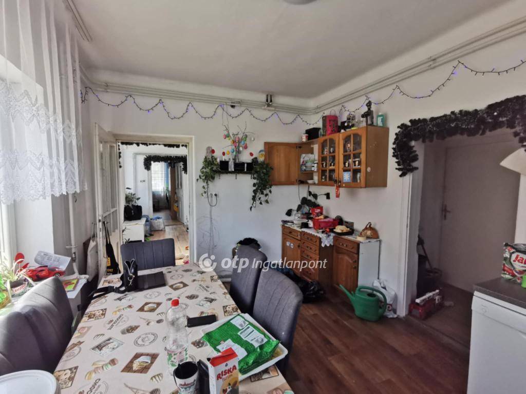 Az egyik szobában laminált parketta, a másikban hajópadló, a harmadikban padlószőnyeg, a konyhában linóleum, a többi helyiségben hidegburkolat található.