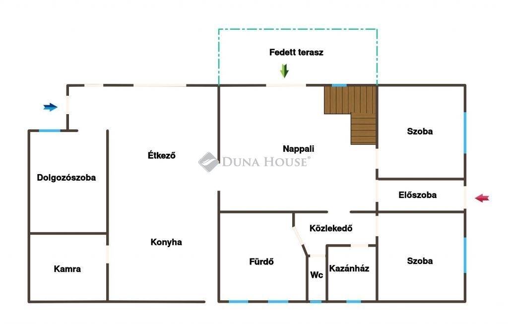 innen nyílik a nagyméretű fedett terasz, amely kiváló helyszíne a pihenésnek vagy baráti összejöveteleknek.