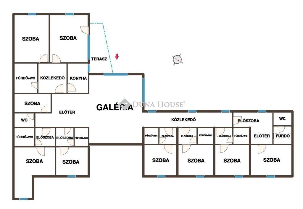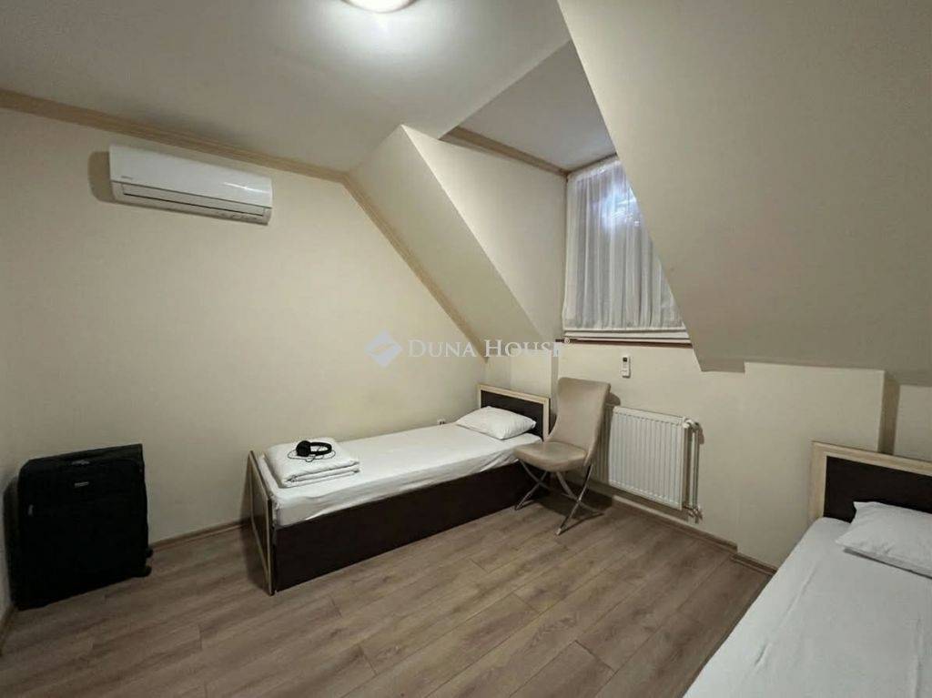 Hosszúpályi központjában eladásra kínálunk egy 2004-ben épült, 258 m²-es, tégla építésű ingatlant, amely jelenleg szálláshelyként működik, azonban korábban üzlethelyiségként, illetve irodaként is használták, így többféle hasznosítási lehetőséget kínál. Az ingatlan befektetési szempontból is kiváló lehetőség, hiszen eladáskor a jelenleg ott tartózkodó vendégekkel együtt kerül átadásra. A meglévő szerződés 2026. június 15-ig érvényes, így az új tulajdonos azonnali bevétellel számolhat. Az épület 30 cm-es tégla falazattal, 10 cm külső hőszigeteléssel és 20 cm födémszigeteléssel rendelkezik, amely kedvező fenntartási költségeket biztosít. A műanyag nyílászárók 2 rétegű üvegezéssel és zsalugáterrel felszereltek. Az ingatlan minden helyisége klimatizált, a klímaberendezések hűtésre és fűtésre egyaránt alkalmasak, így egész évben komfortos használatot biztosítanak. Az épület alsó szintjén recepció található, valamint korábban étkezde is működött az ingatlan egy részében. A helyiségek elrendezése miatt továbbra is alkalmas lehet szálláshely, iroda, szolgáltató egység vagy vendéglátóhely kialakítására. Az ingatlanhoz tartozik egy jelenleg beépített terasz, amely igény szerint visszaalakítható nyitott terasszá. Az épületben WC és fürdőszoba is kialakításra került.A parkolás kiemelkedően jól megoldott: zárt parkoló, amely akár 20 autó számára biztosít helyet, az épület előtt további kb. 5 autó parkolása lehetséges. A biztonságról teljes körű kamerarendszer gondoskodik, amely az épület külső és belső területeit egyaránt figyeli. Az ingatlan kiváló választás lehet befektetőknek, vállalkozóknak vagy szolgáltató tevékenységben gondolkodóknak, hiszen elhelyezkedése és kialakítása számos lehetőséget rejt. Az ingatlan a hozzátartozó földszinttel együtt, melyben jelenleg apartman került kialakításra, de akár külön is megvásárolható.