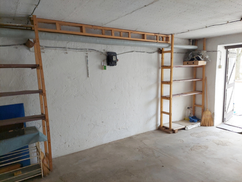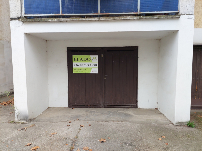 A garázs állapota jó, akár kisebb üzlethelyiség vagy iroda is kialakítható belőle. Az oldalfalaknál polcozás lett kialakítva, így tárolóként is hasznosítható.