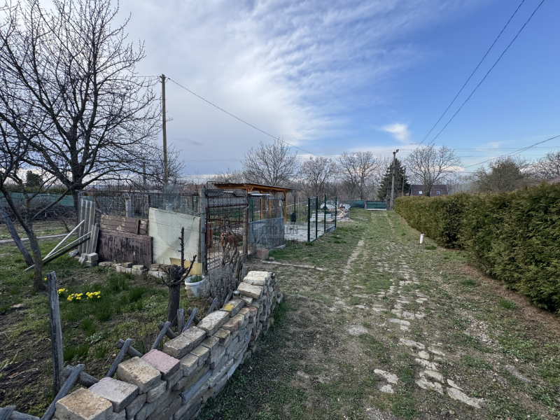 Kezelhető méretű, 807 m2-es telken áll a nappalival bővített tégla épület. Belső feljárást alakítottak ki