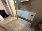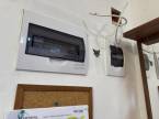 bejárati ajtó lett beépítve. A fűtés megoldható fa tüzelésű kályhával és elektromos panelekkel is.
