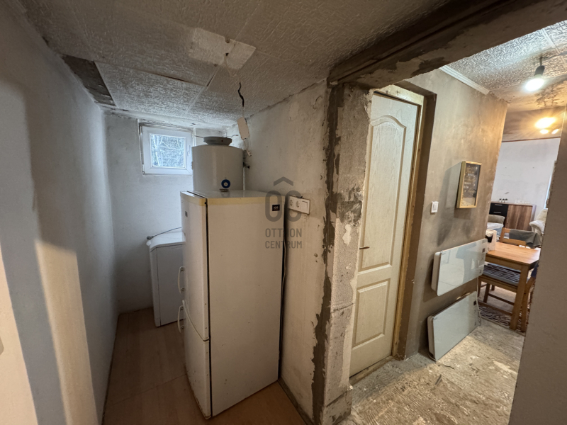 meghagyták a 3 méter hosszú pincét is. Vezetékes víz, szennyvízelvezetés és a villany rendelkezésre áll.