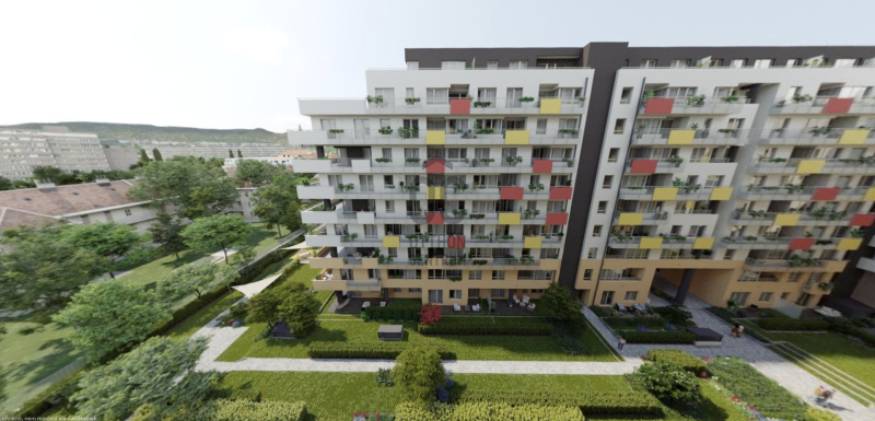 A földszint + 12 emeletes épületet gondosan megtervezett, parkosított környezet veszi körül. A kertépítők által kialakított zöldfelületek kellemes lakókörnyezetet teremtenek. A zárt, csak a lakók számára elérhető belső udvaron füvesített zöldkert, fák és cserjék biztosítják a természet közelségét.
