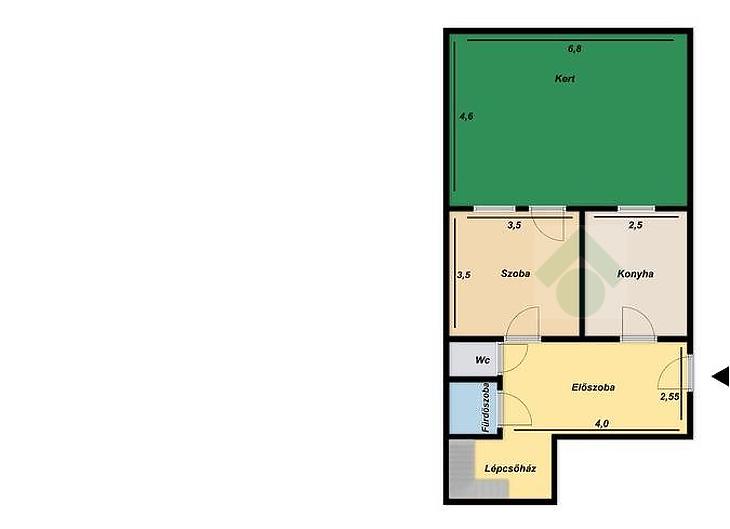 Földszint: előszoba, szoba, konyha, wc, fürdőszoba, 30nm-es kert