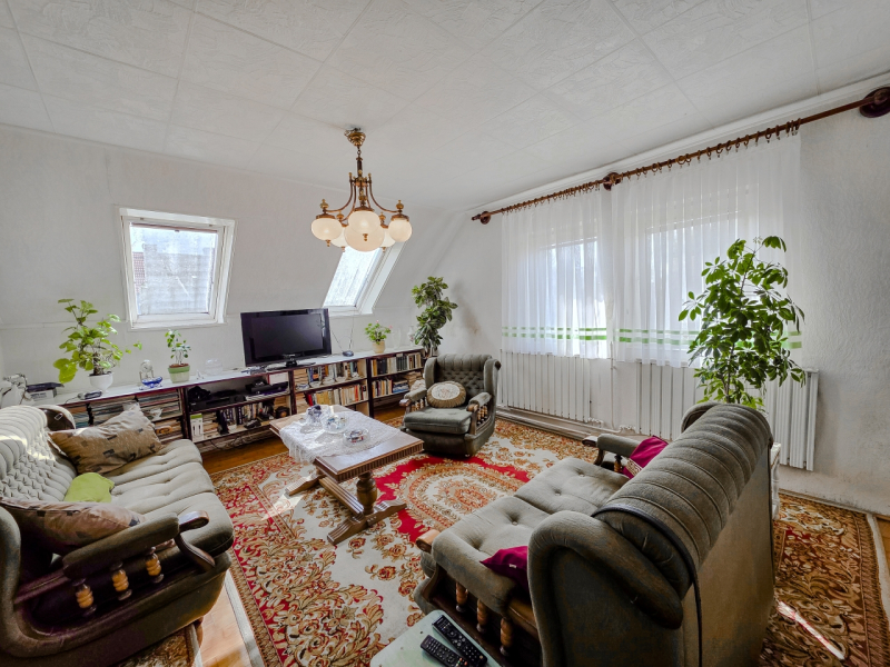 A felső szint jelenleg lakásként funkcionál, de kiválóan alkalmas irodának, rendelőnek vagy egyéb szolgáltató tevékenységre is.