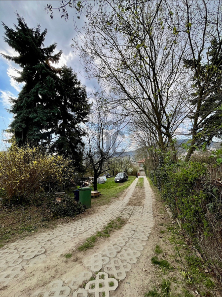 A telken jelenleg egy kisebb méretű családi ház áll, mely bontandó, azonban az építkezés ideje alatt kiválóan használható felvonulási épületként.