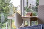 Ősszel az erdő közelsége új színt hoz: a domboldal aranyló levelei a homlokzatról visszaverődő fényekkel játszanak, a teraszról kilépve érezni a nedves föld és a lehulló levelek illatát – ez a ház ilyenkor különösen otthonos, bensőséges.