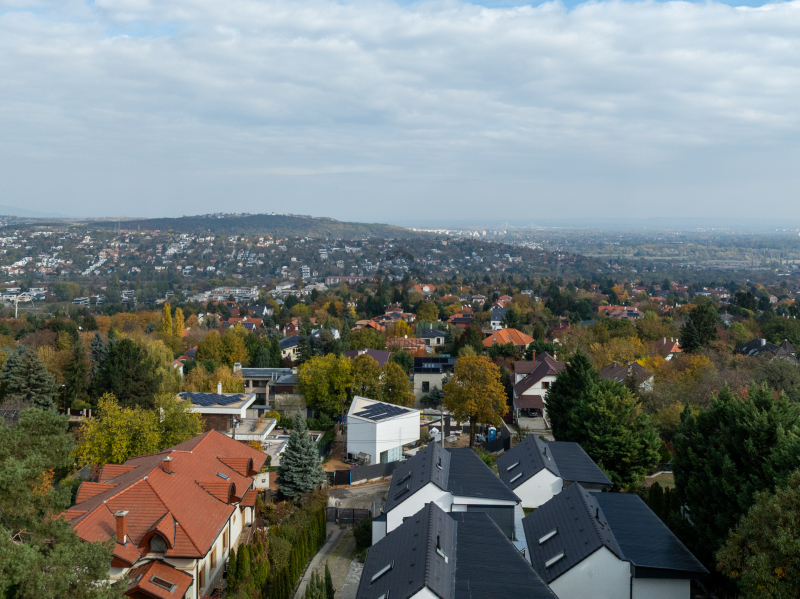 Télen a panoráma megváltozik, a kert letisztul, a ház belsejéből pedig a kinti csend még mélyebbnek tűnik. A meleg fények, a padlófűtés finom hője és a közös nyugodt esték meghitt hangulatot teremtenek – ez az időszak, amikor az otthon szó valódi értelmet nyer, amire évekkel később is jó visszaemlékezni.