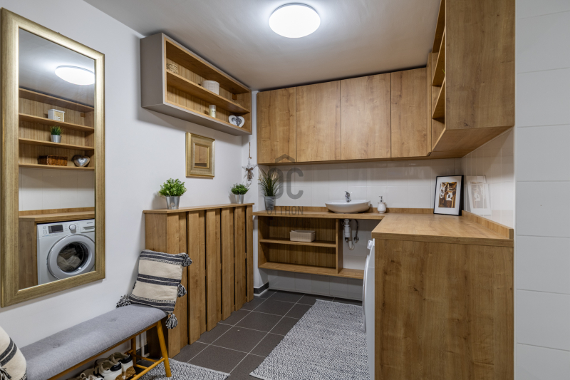A padlófűtés és radiátor kombinációja télen finom, egyenletes meleget ad, a klíma pedig nyáron is hűvösen tartja a tereket. A gardrób és a háztartási helyiség csendben végzi a dolgát – támogatja a családot abban, hogy minden a helyén maradjon, miközben az élet zajlik körülötte.