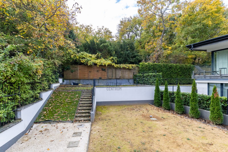 A házhoz 423 m²-es kert, és két garázshely tartozik, melynek árát a vételár tartalmazza, csak úgy, mint a beépített bútorzatot, és gépesítést.