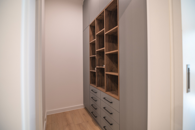 A tárolásról egy beépített gardrób gondoskodik, amely szintén magas minőségű anyagok felhasználásával készült.