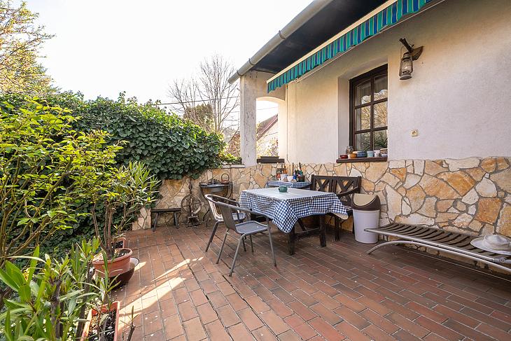 Fedett autóbeálló is található a meghitt 120 négyzetméteres udvaron.