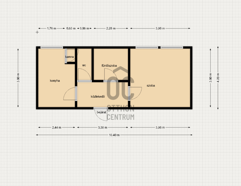 A lakás konyha bútorral berendezett, tágas szobával, konyhával, kamrával, fürdőszobával és külön mellékhelyiséggel rendelkezik. Keleti tájolású!