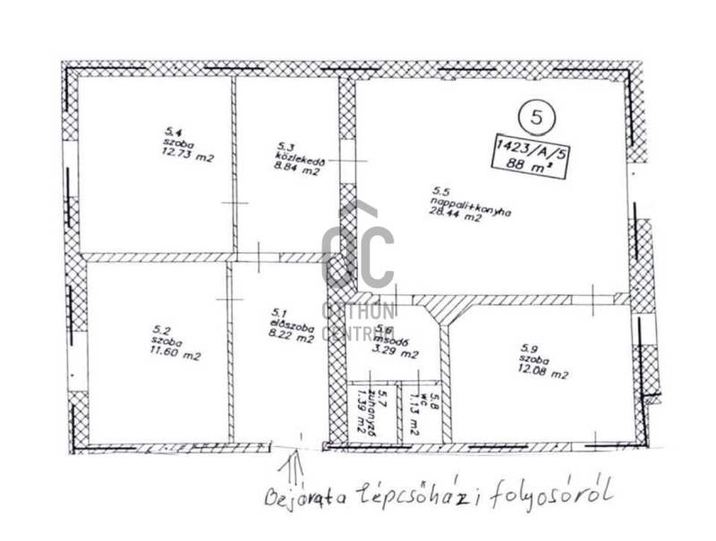 Csorna belvárosában,impozáns sarokházban lakás eladó.