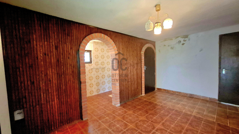 A Pellérdi buszfordulótól 300 méterre, eladó Aranyosgadány felé egy egy szintes, tornácos, tégla falazatú, 38 m2-es, 2 szobás, fürdőszobás, főzőfülkés kialakítású,
