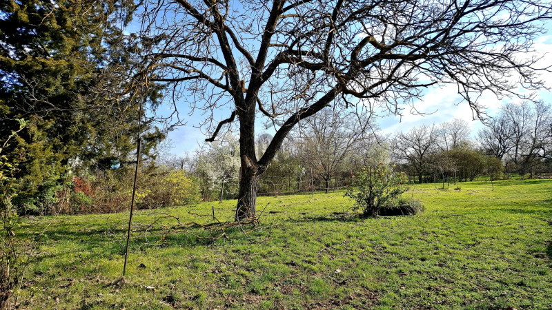 A telek sík, sok féle termő gyümölcsfa megtalálható rajta, ezért érdemes volna körbe keríteni.