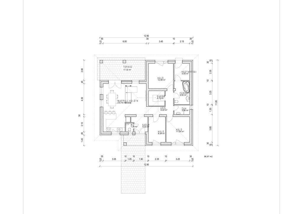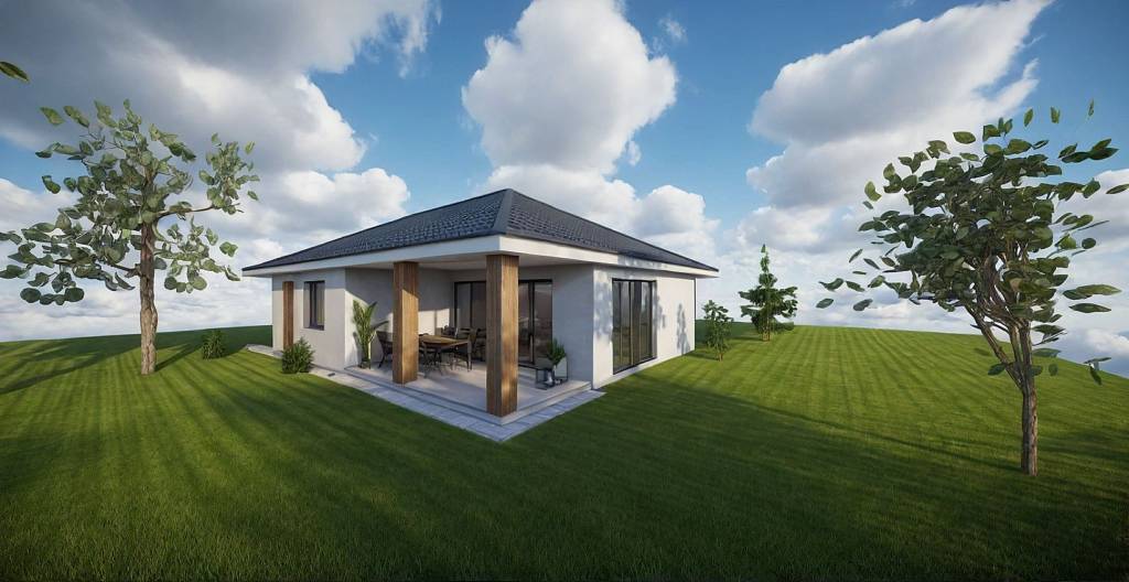 Igény esetén vállaljuk a teljes körű befejezést: teraszfedést a főépület stílusában, szerkezetkész utcai kerítés építését, valamint a teljes térkövezést és parkosítást.