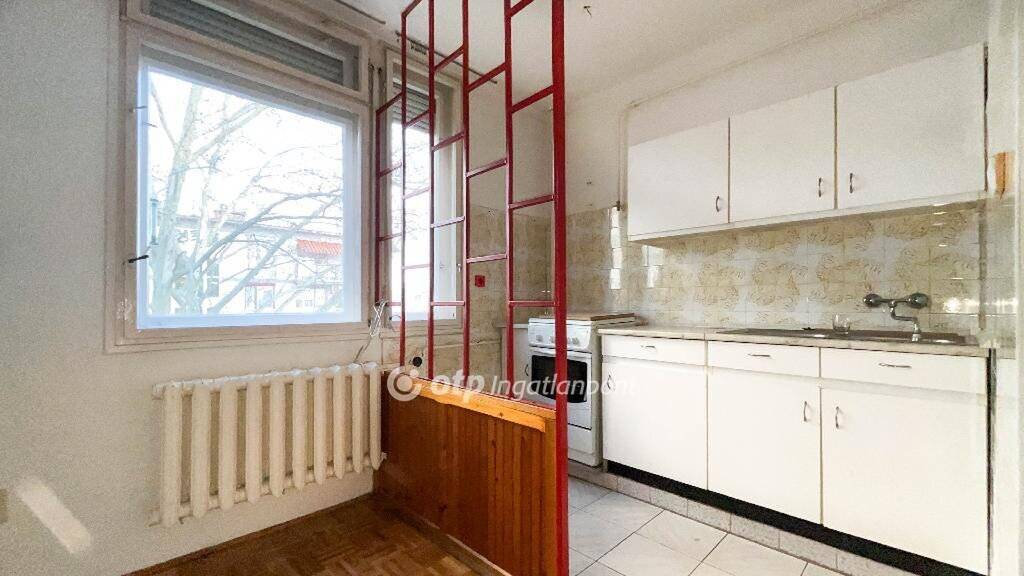 A lakás egyik nagy előnye a parkra néző kilátás, amely csendes, nyugodt lakókörnyezetet biztosít. A tágas konyha lehetőséget ad egy kényelmes étkező kialakítására is.